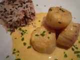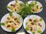 Ingrédients: 500 g de noix de St-jacques Un peu de fumé de poisson 100 g de julienne Persil 20 cl de crème fraîche Sel poivre Un peu de beurre Une échalote de...