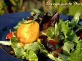 Ingrédients: Concombre anglais en dés Tomates tranchés Poivron orangé en fines tranches Oeufs de caille -Croûtons de focaccia Vinaigrette de base: 3/4 tasse de...