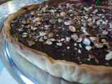 Ingrédients: pâte à tarte pour un moule 150 g de chocolat noir 64% 100 g de poudre d'amande une cuillère à café de maïzena 2 oeufs entiers et 3 jaunes 100 g de...