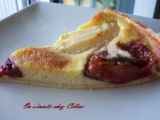 Ingrédients: 1 pâte feuilletée 100 grammes d'amandes effilées Des cerises, de facon à remplir le moule en totalité (ou des pêches) 3 oeufs 10 cl de crème...