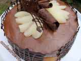 Ingrédients: Pour la génoise : 130 g de sucre en poudre 130 g de farine 1/2 sachet de levure chimique 4 oeufs 1 grande boîte de poires au sirop Pour la mousse...