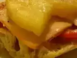 Ingrédients: 1/4 de baguette 2 cuillères à soupe de purée de tomate 2 cuillères à soupe de ricotta 4 tranches de poivron rouge 2 tranches de jambon de dinde 2...