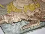 Ingrédients: 4 cuisses de lapin 20 cl de crème liquide ou épaisse une dizaine de champignons de paris 1 gros oignon 125 ml de vin blanc sec sel poivre 1/2 C à...