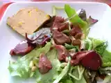 Ingrédients: 1 saladier de mesclun (mélange de jeunes pousses de salade) 1 bocal de foie gras au naturel 1 boite de conserve de gésiers de canard gras (5 gros...