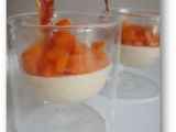 Ingrédients: Pour 6 panna cotta: 300 g de jus de fruits 2 yaourts à 0% 2 g d'agar agar Sauce au chocolat : 4 carrés de chocolat pâtissier 3 à 4 CS de crème...