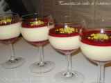 Ingrédients: 500 ml de crème 20 % 100 g de sucre en poudre 2 feuilles de gélatine 1 sachet de vanille Pour le coulis de framboises: 400 g de framboises + 60 g...