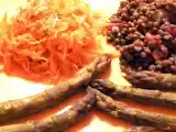 Ingrédients: 4 carottes 1 poignée d'un mélange de graines germées de votre choix Vinaigrette -1 kg d'asperges 350 g de lentilles vertes 1 cuillère à soupe de...