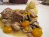 Ingrédients: 600 gr de veau dégraissé pour blanquette 2 oignons 2 gousses d'ail 1 carotte 1 cube de bouillon de veau dégraissé Du thym 1 feuille de laurier 500...