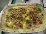 Ingrédients: 2 grosses pommes-de-terre 60 g de Cancoillotte au vin blanc 4 cuillère à café de crème fraîche liquide 20 g de gruyère 1 tranche de jambon blanc...