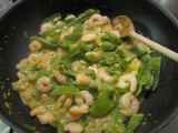 Ingrédients: 800 gr de grands scampis surgelés 250 gr de mange-tout 1/2 céleri blanc 3 cuillères à soupe de noix de coco moulue 2 échalotes 1 éclat d'ail 2 dl...