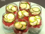 Ingrédients: Pour la crème de courgettes : 500 g de courgettes 1/3 de cube de bouillon de volaille ou de légumes ½ l d'eau 2 cuillères à soupe de parmesan râpé...