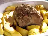 Ingrédients: 800 g de rôti de porc dans le filet , 4 pommes golden, 2 tablettes de légumes, 25 g de beurre demi sel, 15 cl de crème liquide, 8 feuilles de...