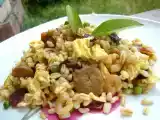 Ingrédients: blé cuit de la veille 2 oignons 3 gousses d'ail une poignée de champignons chinois émincés 1 poignée de petits pois cuits 1 poignée de petites...