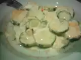 Ingrédients: 3 courgettes 100 g de chèvre frais type Chavroux 20 cl de crème de soja cuisine sel et poivre un peu de curcuma moulu un filet d'huile d'olive