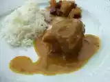 Ingrédients: 500 g de veau 2 oignons 2 gousses d'ail 2 pommes 40 g de raisins secs 1 feuille de laurier 25 g de noix de coco râpée 20 cl de lait de coco 50 cl...
