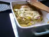 Ingrédients: 3 feuilles de lasagnes 2 poireaux 1 verre de fond de veau dilué 2 tranches de bacon 2 cuillère à soupe de mascarpone 4 tranches de gouda une...