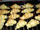 Ingrédients: Pour 16 mini croissants : 1 rouleau de pâte feuilletée quelques dés de Gouda au cumin quelques graines de cumin jaune d’oeuf pour dorer Mini...