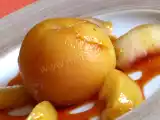 Ingrédients: 6 pêches (pas trop mûres) 35 cl d'eau 100 g de sucre 2 cuillères à soupe de gelée de groseilles 1 dose de safran 1 fève tonka de petite taille