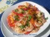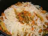 Ingrédients: 3 c. à soupe d'huile de sésame 2 œufs 1 gousse d'ail 1 échalote 1 carotte 1 blanc de poireaux 1 piment rouge doux 100 gr de poulet 15 crevettes...