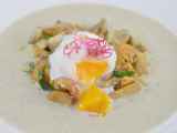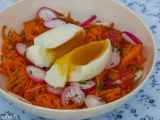 Ingrédients: 6 carottes 2 oeufs quelques radis quelques fines tranches de chorizo 2 cs d' huile 2 cs de vinaigre balsamique blanc une cc de moutarde un petit...