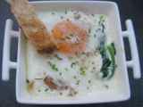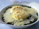 Ingrédients: 400g d' épinards frais 200g de sauce tomate 2 oeufs 1 cuillère à café de graine de moutarde 1 gousse d' ail 1 oignon 20g de beurre Un peu de...