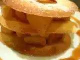 Ingrédients: Disques de pâte : 60 g de sucre glace 30 g de farine 40 g de blancs d’oeufs 40 g de beurre fondu Garniture : 3 pommes 1 cuillère à soupe de...
