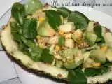 Ingrédients: 1 ananas pain de sucre 1 petite boîte de maïs (165 g égoutté) 1 avocat Comté (un petit morceau) Mâche 1 citron Huile d'olive Vinaigre balsamique...