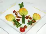 Ingrédients: 1 endive d'environ 100 g 1 oeuf 30 g de farine 150 ml de lait 10 g de noix concassées 30 g de chèvre frais 1 rondelle de chèvre bûche 1 bonne...