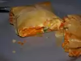 Ingrédients: 5 feuilles de pâte à filo 1 oeuf dur 1/2 boîte de thon à l'eau 2 cuillères à soupe de gruyère râpé 10 olives dénoyautées 1 cuillère à café de...