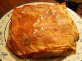 Ingrédients: 4 grandes feuilles de filo (double épaisseur) environ 10 pommes (pas compté) 60 g de beurre (environ) une poignée de raisins secs une belle...