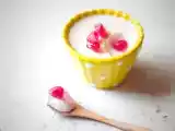 Ingrédients: 20 cl de crème liquide 5 cl de lait 1 cuillère à soupe de sucre 1 petite poignée de fleur d'hibiscus quelques graines de grenade 1 feuille de...