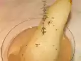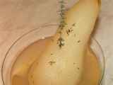 Ingrédients: Pour les pêches au citron et au thym : 2 pêches bien mûres 1 citron 15 g de beurre 2 cuillères à soupe de sucre thym Pour le sabayon au rhum : 2...