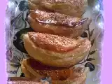 Ingrédients: 1/2 quantité de crème pâtissière express (elle se congèle sans problème) 12 carrés de pâte feuilletée du commerce 1 grosse boîte d'oreillons...