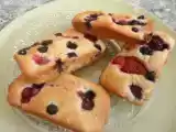 Ingrédients: 130 g de sucre glace 50 g de farine 50 g de poudre d'amande 1 pincée de levure chimique 4 blancs d’oeufs 70 g de beurre 1 bouchon de rhum pépites...