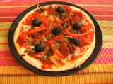 Ingrédients: 1 tortilla 1 tranche de jambon de Parme 2 cuillères à soupe de coulis de tomate de la mozzarella poivre origan ail 3 belles poignées de roquette 1...