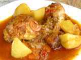 Ingrédients: 1 poulet de 2 kg environ 3 oignons 4 échalotes 4 gousses d'ail 2 boîtes de tomates entières 2 pots de poivrons rouges (pelés/grillés) en conserve...