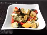Ingrédients: 4 cuisses de poulet 1 poivron rouge coupé en petits cubes 1 poivron vert coupé en petits cubes 1 boîte de tomates pelées de 400g 2 oignons...