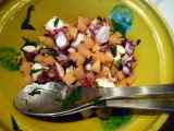 Salade de poulpe à la tunisienne Entrée moyen 24 heures 2 heuresIngrédients: 100g de pois chiches 1 poulpe 2 tomates 2 citrons 2 cébettes 2 gousses d'ail coriandre fraîche 1 coeur de laitue quelques croûtons et olives...
