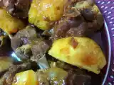Ingrédients: -700g de sot-l'y-laisse de dinde -800g de pommes des terre à chair ferme -1 boite de tomates pelées -1 bâton de citronnelle -1 c à c de gingembre...