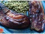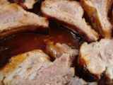 Ingrédients: 2 pièces de Porc (travers) Jus d'ananas 2 cuillères à soupe de Sauce Worcestershire , 1 cuillère à soupe de Miel 2 cuillères à café de Thym 3...