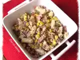 Ingrédients: 75 g d'un mélange de quinoa et de boulgour 100 g de bacon cuit 1 petite boîte de 150 g de maïs égoutté 1 petite boîte de 100 g de têtes d'asperges...