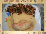 Épaule de lapin en sauce, ses lardons de poitrine fumée et ses pommes de terre