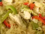 Ingrédients: 500 g de choucroute nature cuite 4 blancs de poulet 1 poivron rouge 1 poivron vert 5 cl de vin blanc 1 cuillère à soupe de sauce soja 1 cuillère à...