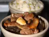 Ingrédients: 450 g de faux-filet de boeuf 2 cuillères à soupe de sauce soja 1 cuillère à soupe de maïzena 3 cuillères à soupe d'huile 1 cuillère à soupe d'ail...