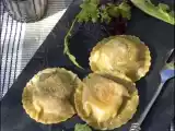 Ingrédients: 1 fromage de chèvre type crottin 4 figues moelleuses de la chiffonnade de jambon cru 24 feuilles à ravioli chinois jaune d'oeuf sel poivre huile...