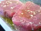 Ingrédients: -2 steaks de thon (400 g) Faire mariner les steaks la veille (au moins 24 h), au frigo. On peut les retourner de temps en temps pour qu'ils...