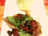 Ingrédients: 2 faux filets ou côte de boeuf ou pièce de boeuf individuel assez épaisse 4 tomates séchées 1 belle gousse d'ail 3 feuilles de basilic quelques...