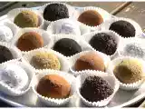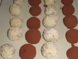 Ingrédients: 400 g de chocolat noir à pâtisserie 20 cl de crème liquide Du cacao amer en poudre Du café au chocolat d'Histoire de goût De la noix de coco râpée...