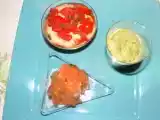 Ingrédients: 1) Verrines de tartare de saumon : 300 g de filet de saumon ultra frais 2 petites échalotes 1 jus de citron 1 cuillère à soupe d'huile d'olive 1/2...