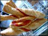 Ingrédients: 1 pâte feuilletée 3 c. à soupe de sauce tomate graines de sésame 1 œuf